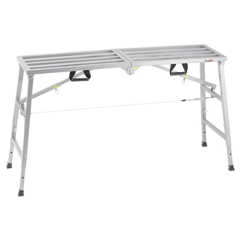 Teleskooppijalat on säädettävissä neljään eri korkeuteen, joten voit mukauttaa tason korkeuden työtehtävän ja alustan mukaan. Tämä tekee alustan käytöstä joustavaa sekä sisällä että ulkona, myös epätasaisella maalla.