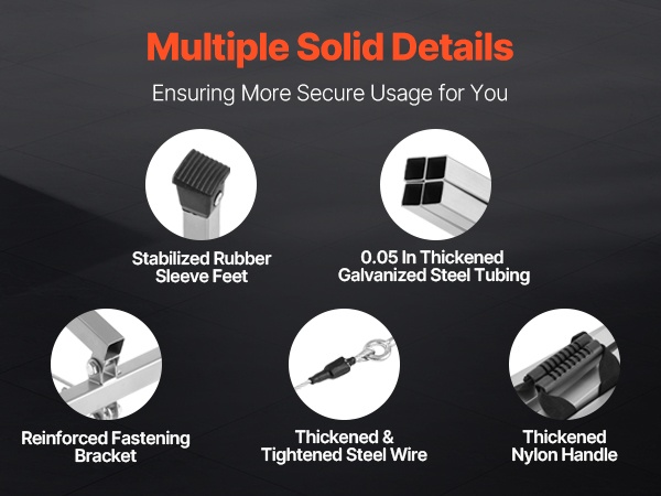 Runko on valmistettu 1.2 mm paksuista galvanoiduista teräsputkista (Q235), jotka tarjoavat hyvän korroosion- ja ruosteenkestävyyden. Vahva runko ja taso kestävät jopa 800 paunan / 360 kg kuorman, joten alusta sopii sekä ammattilais- että harrastekäyttöön.