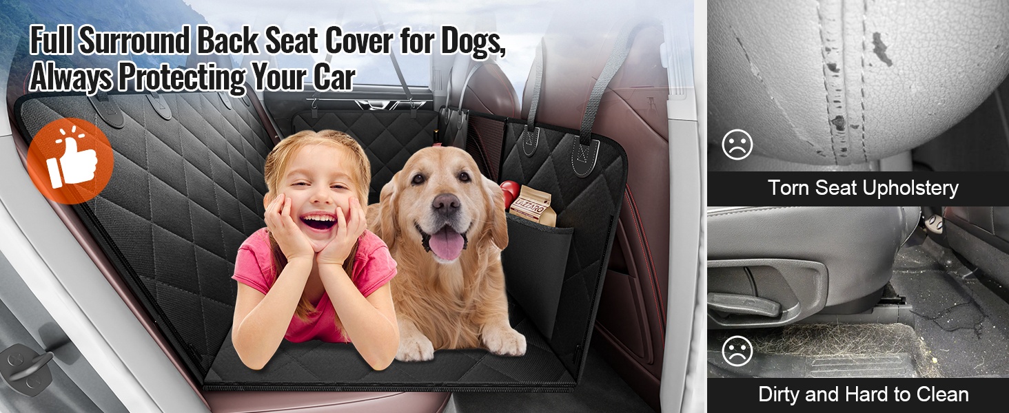 Takapenkille suunniteltu jatke estää naarmuja ja suojaa istuimia myös pahoinvoinnin tai kuran aiheuttamilta tahroilta, pitäen auton sisustan siistimpänä.