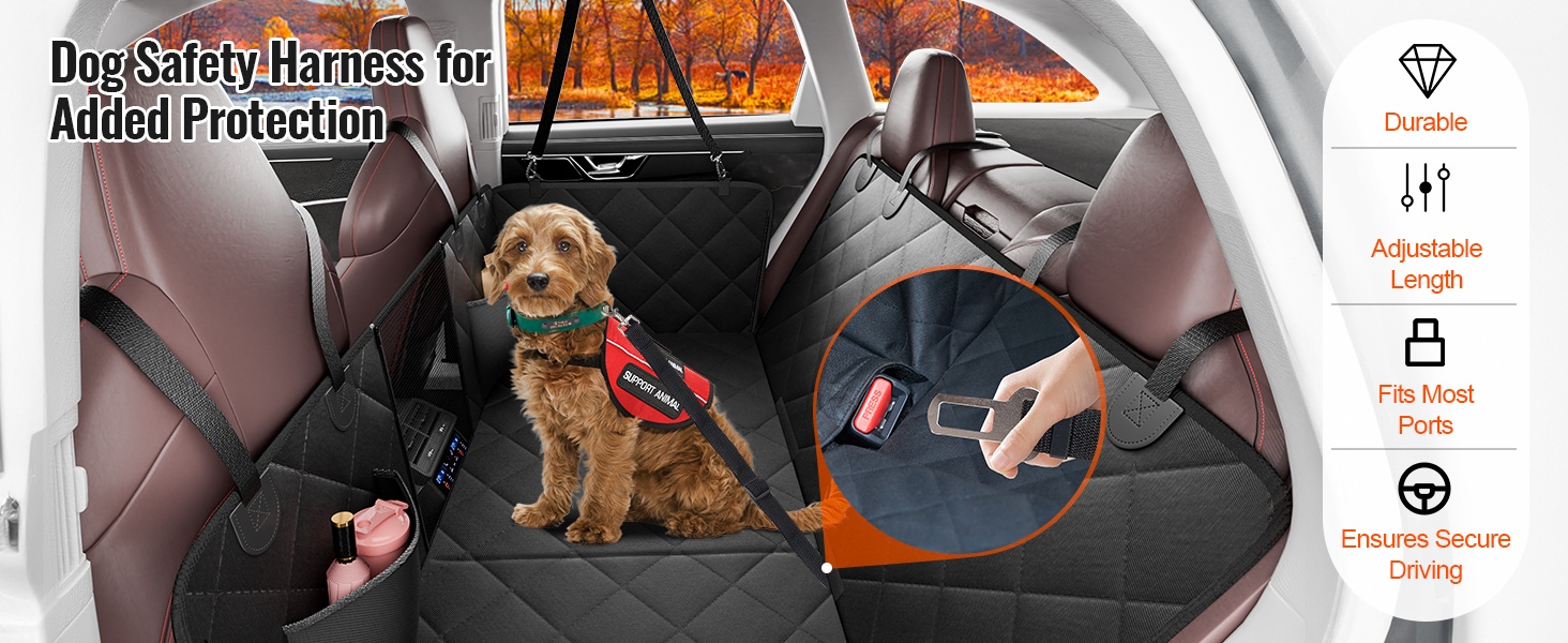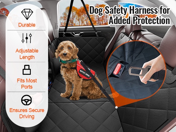 Mukana on säädettävä turvavyö, jolla koira voidaan kiinnittää. Se auttaa estämään koiraa sinkoutumasta äkkijarrutuksessa ja parantaa sekä lemmikin että kuljettajan turvallisuutta ajon aikana.