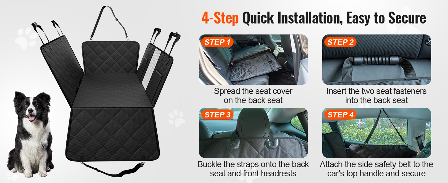 Asennus on nopea eikä vaadi erikoistyökaluja. Saat koiran istuinsuojan ja jatkeen käyttöön muutamassa minuutissa, ja yhtä helposti sen voi myös irrottaa ja taittaa kasaan, kun sitä ei tarvita.