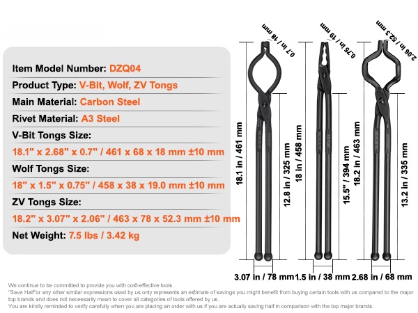 3-osainen takomapihdisarja sopii sekä aloittelijoille että kokeneille sepille. Eri leukatyypit mahdollistavat erimuotoisten kappaleiden pitävän otteen ilman, että taonta-aihe vahingoittuu. Sarja sisältää V-Bit-pihdit pultteihin, niitteihin ja T-muotoisiin kappaleisiin, Wolf-leukaiset pihdit hevosenkenkiin, metallirenkaihin ja muotoiltuihin taontatöihin sekä ZV-pihdit teriin, pitkiin miekkoihin ja muihin pitkään materiaaliin.