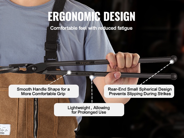 Pihdeissä on mukava ja tasapainoinen ote, joka vähentää käsien väsymistä pitkäkestoisessa käytössä. Ne ovat kevyet käsitellä, ja pieni pyöristetty pää auttaa estämään lipsumista iskujen aikana. Sileä kahvan muoto tuntuu kädessä mukavalta ja helpottaa hallintaa.