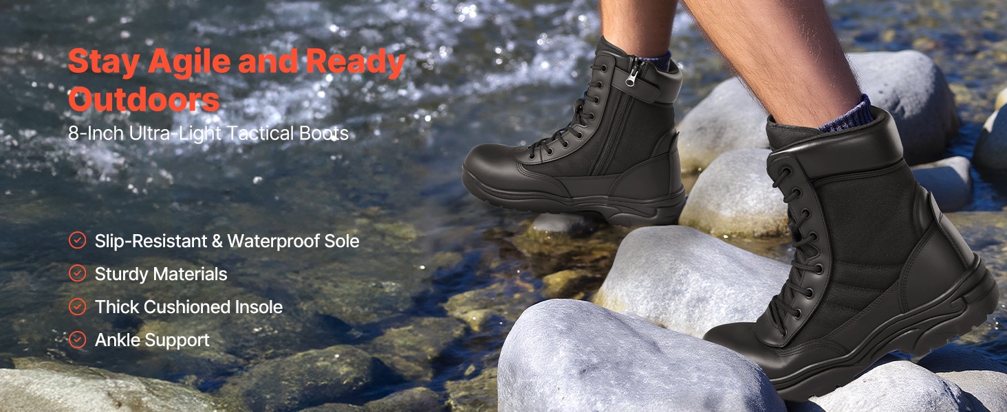 Miesten taktiset saappaat kahdeksan tuumaa vedenpitävä kumipohja sivuvetoketju hengittävä materiaali