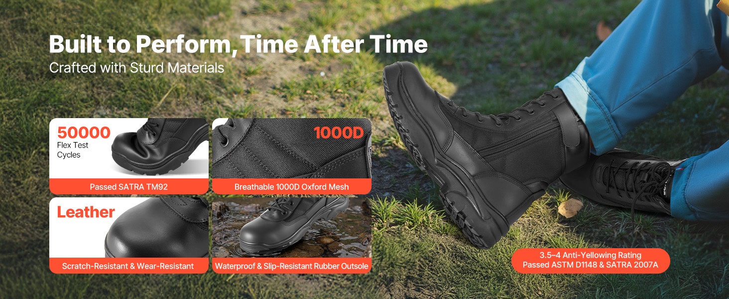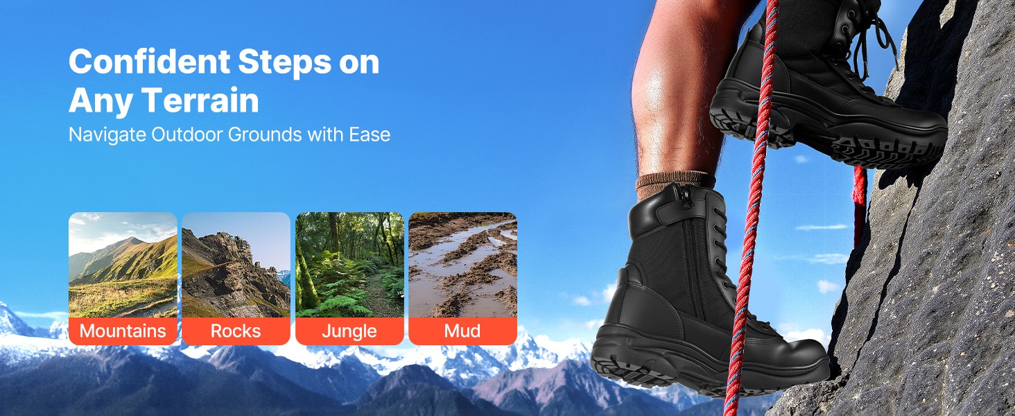Nämä 152.4 mm korkeat taktiset saappaat on suunniteltu ulkokäyttöön, työtehtäviin ja vaativaan liikkumiseen. Ne yhdistävät keveyden, hengittävyyden ja tukevan rakenteen, jotta jalat pysyvät mukavina ja suojattuina koko päivän.