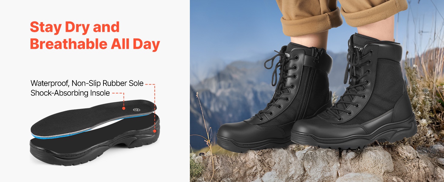 Miesten kevyet taktiset saappaat vedenpitävät hengittävät sivuvetoketjulla pitävällä kumipohjalla