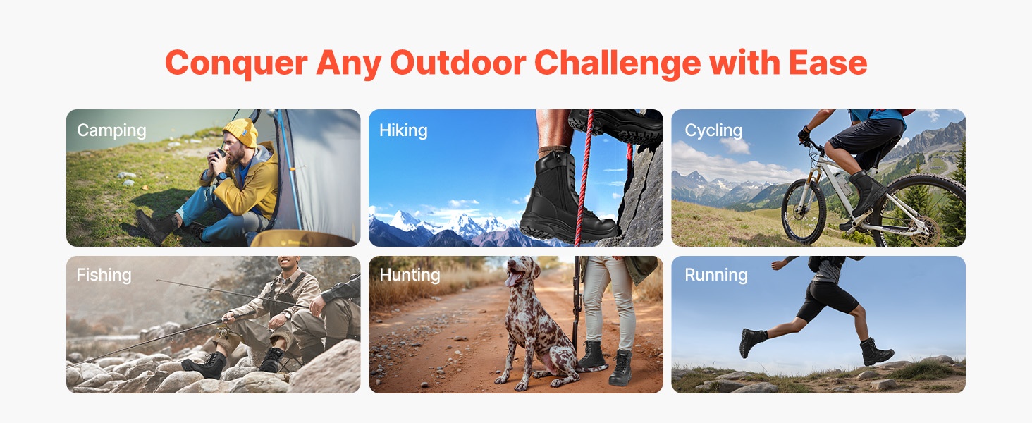 Saappaat soveltuvat monenlaisiin ulkoaktiviteetteihin – kuten retkeilyyn, vaeltamiseen, pyöräilyyn ja metsästykseen – ja tarjoavat tukevan tuen ja suojan erilaisissa maastoissa ja tilanteissa.