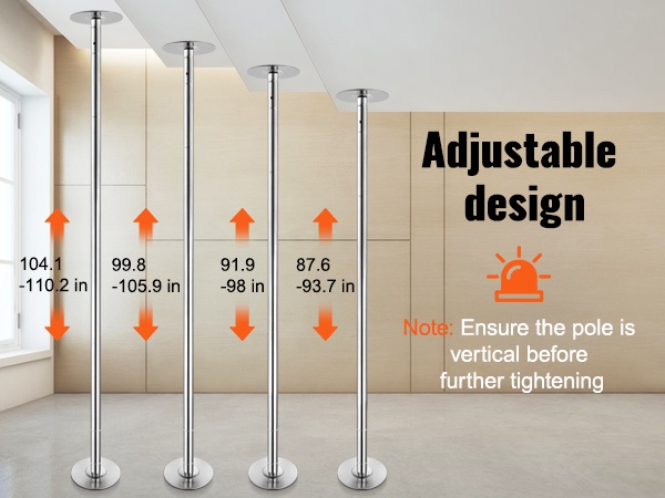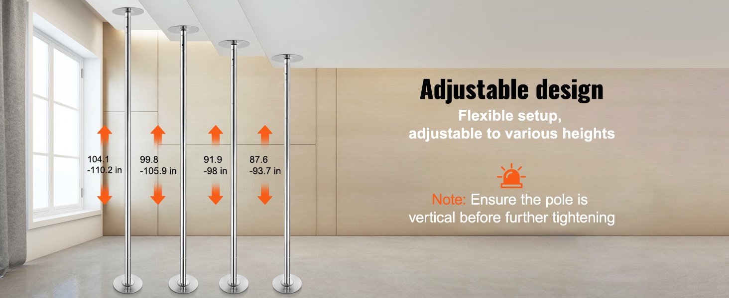 Tankotanssitanko 40 mm teräs säädettävä korkeus pyörivä ja staattinen pinkki