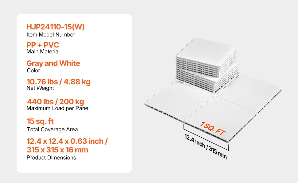 - Tuotteen mitat (yksi laatta): 12.4 x 12.4 x 0.68 tuumaa / 315 x 315 x 17.2 mm