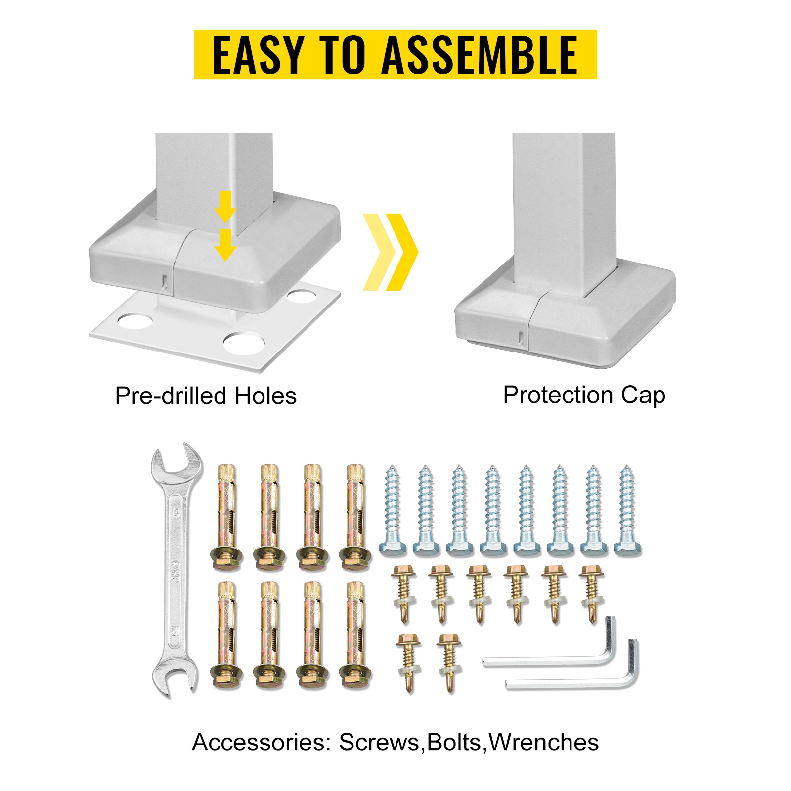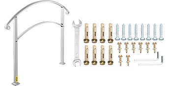 Toimitus sisältää tarvittavat pultit ja ruuvit kaiteen ja tolppien kiinnittämiseen portaisiin. Asennus onnistuu perustyökaluilla, ja kaide saadaan käyttöön lyhyessä ajassa.