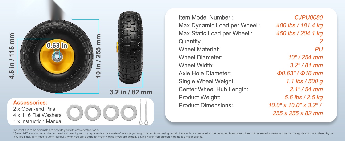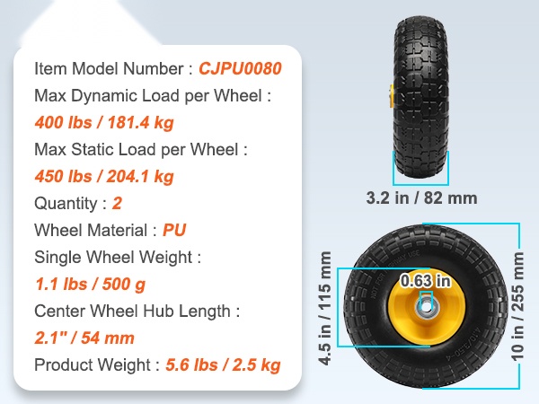 - Pyörän halkaisija: 10" / 254 mm