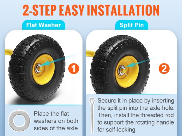 Asennus käy nopeasti: pyörät kiinnitetään mukana tulevilla aluslevyillä ja sokilla. Erikoistyökaluja ei tarvita, joten saat kalusteen helposti käyttövalmiiksi.