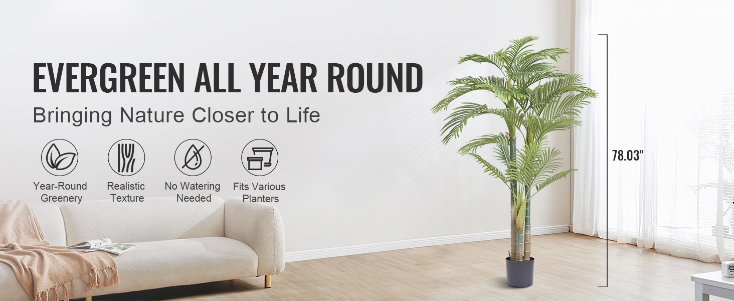 Tämä 1.8 m korkea teko-oliivipuu tuo vihreyttä kotiin, toimistoon tai varastotiloihin ilman kastelua tai leikkaamista. Kompakti ruukku vie vähän lattiatilaa, mutta tuuhea latvus tekee tilasta heti viihtyisämmän.