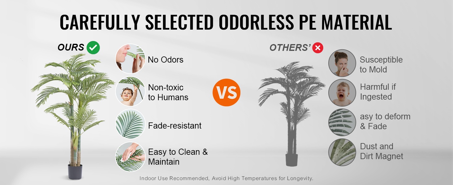 Puu on valmistettu turvallisesta PE-materiaalista, joka sopii käytettäväksi lemmikkien ja perheen keskellä. Materiaali on hajuton ja vesitiivis, joten puun voi pyyhkiä puhtaaksi kostealla liinalla.