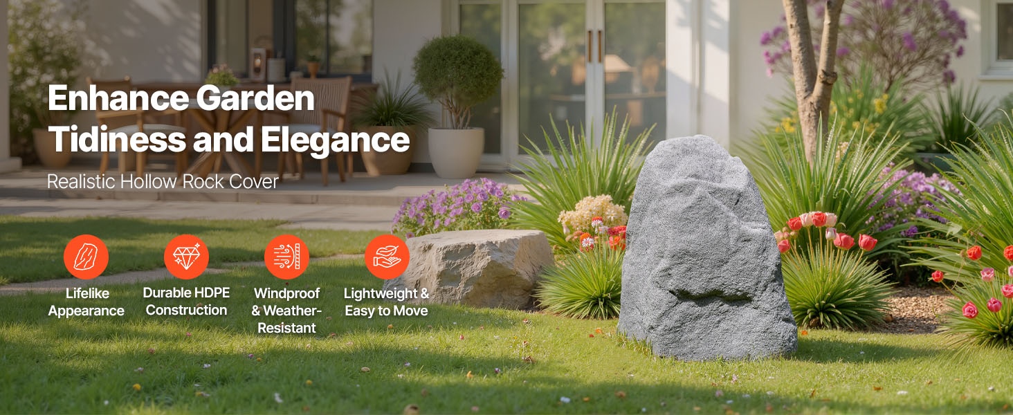 Tekokivipinta sulautuu luonnolliseen ympäristöön ja peittää siististi esimerkiksi kaivonkannet, putket ja muut tekniset kohteet. Kivikupu auttaa pitämään pihan ja puutarhan siistinä ja viimeisteltynä.