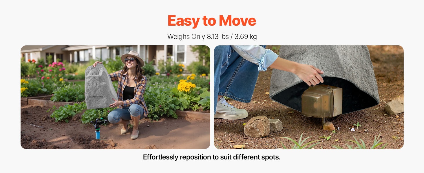 Keveän polyeteenirakenteen ansiosta tekokivikuoren voi nostaa ja siirtää helposti yksi henkilö. Sijaintia on helppo muuttaa esimerkiksi vuodenaikojen tai pihajärjestelyjen mukaan.