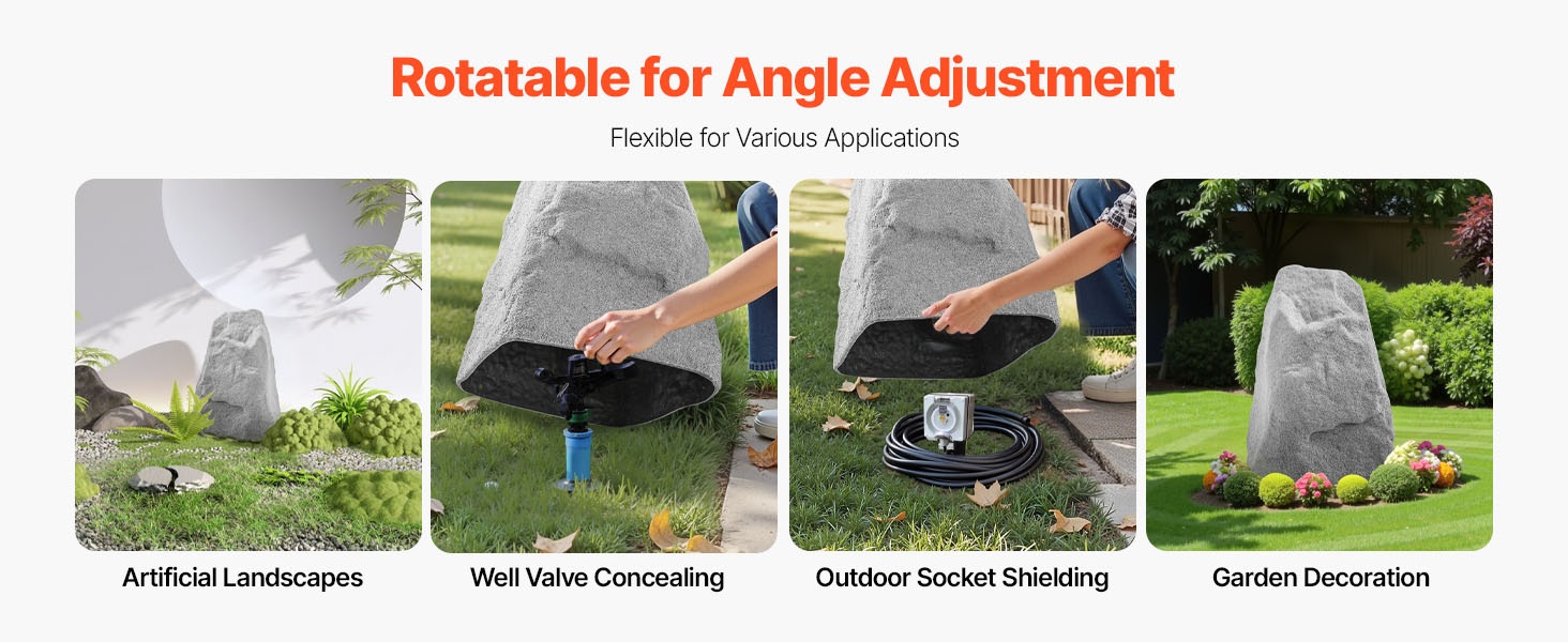 Kiven kulmaa ja suuntaa voi kääntää ja säätää tarpeen mukaan. Sopii hyvin esimerkiksi kaivonkansien peittämiseen, pienten pumppujen suojaamiseen, sähkörasioiden näkösuojaksi sekä yleiseen puutarhasomistukseen. Monikäyttöinen ja huomaamaton ratkaisu pihalle.