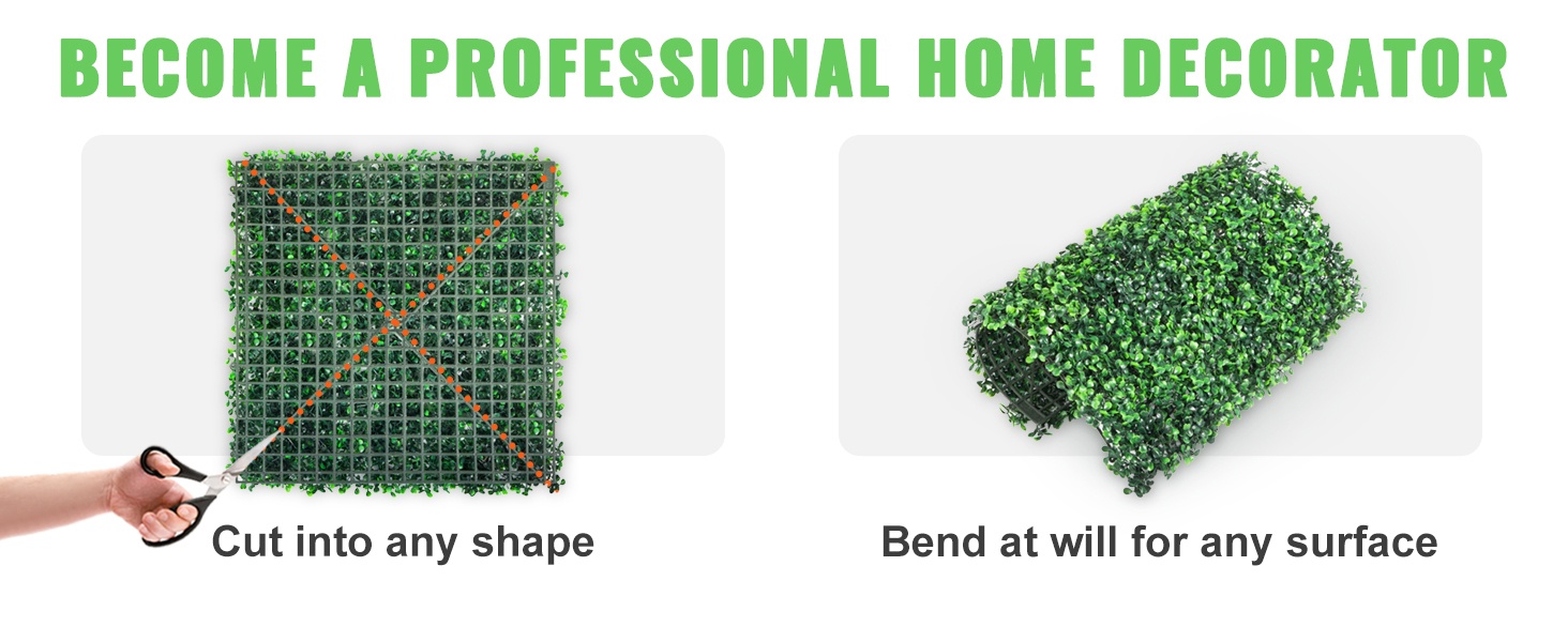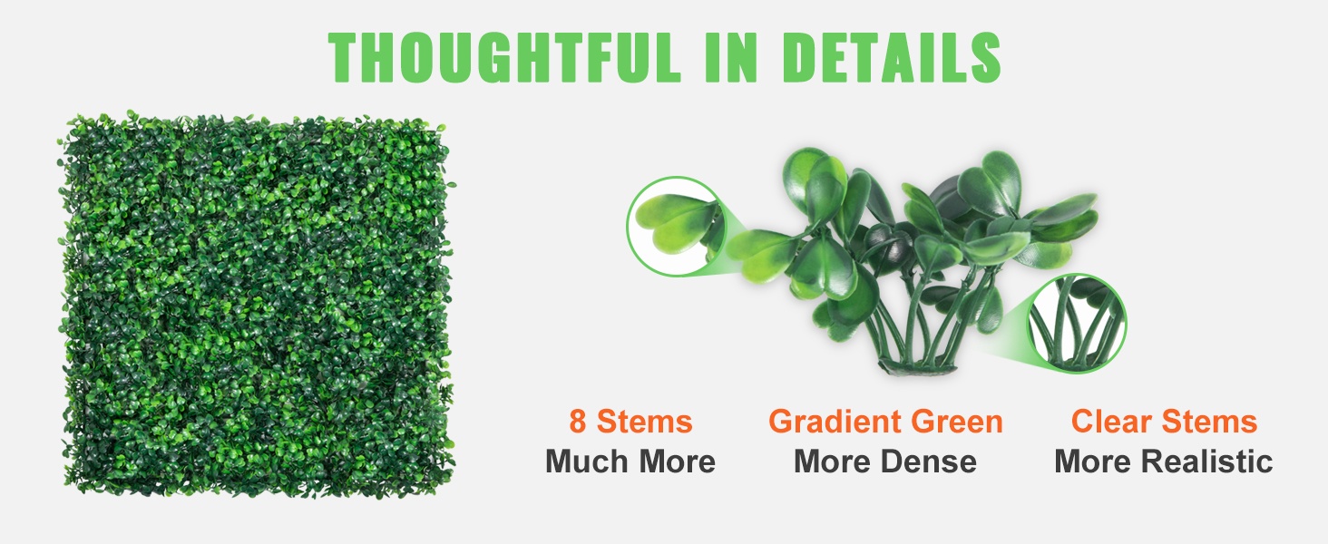 Tekohaiviäseinä yhdistää näkösuojan ja vehreän ulkonäön. Lehtipinta on valmistettu haalistumista kestävistä materiaaleista, joten väri säilyy kirkkaana myös vaihtelevissa sääolosuhteissa.