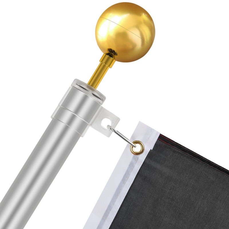 Clip-kiinnikkeiden avulla voit ripustaa yhden tai kaksi lippua niin, etteivät ne helposti sotkeudu toisiinsa. Tangon yläosassa oleva kultainen pallo viimeistelee ulkonäön ja sopii yhteen aurinkovalojen kanssa (ei sisälly toimitukseen).