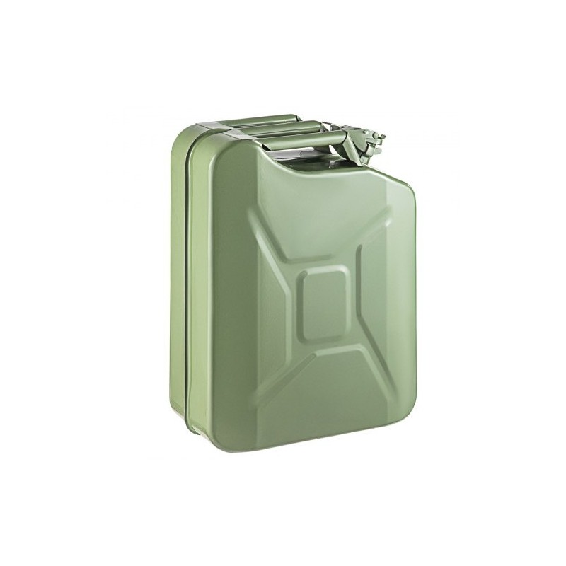 - Sotilastyylinen 20 L teräskanisteri varapolttoaineelle