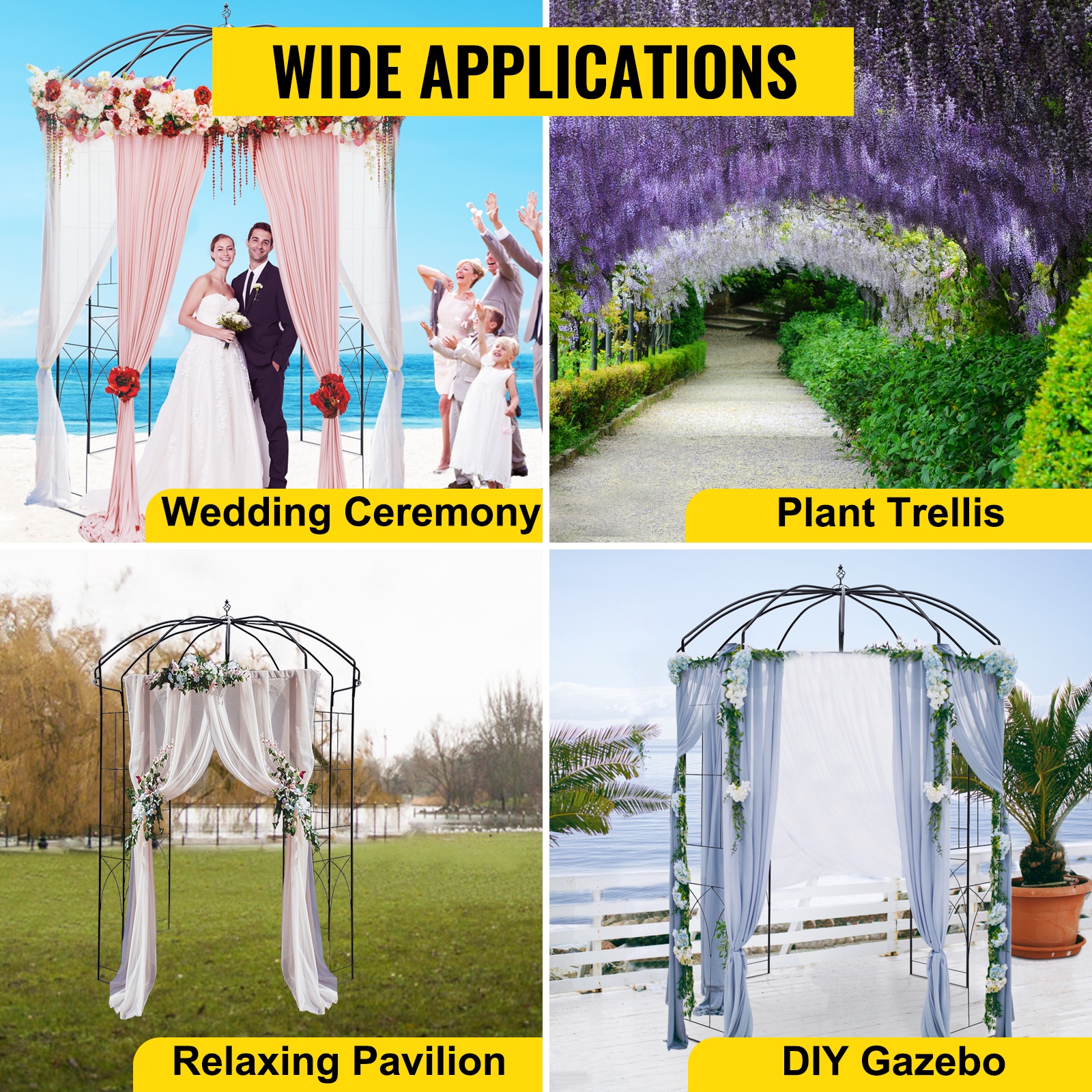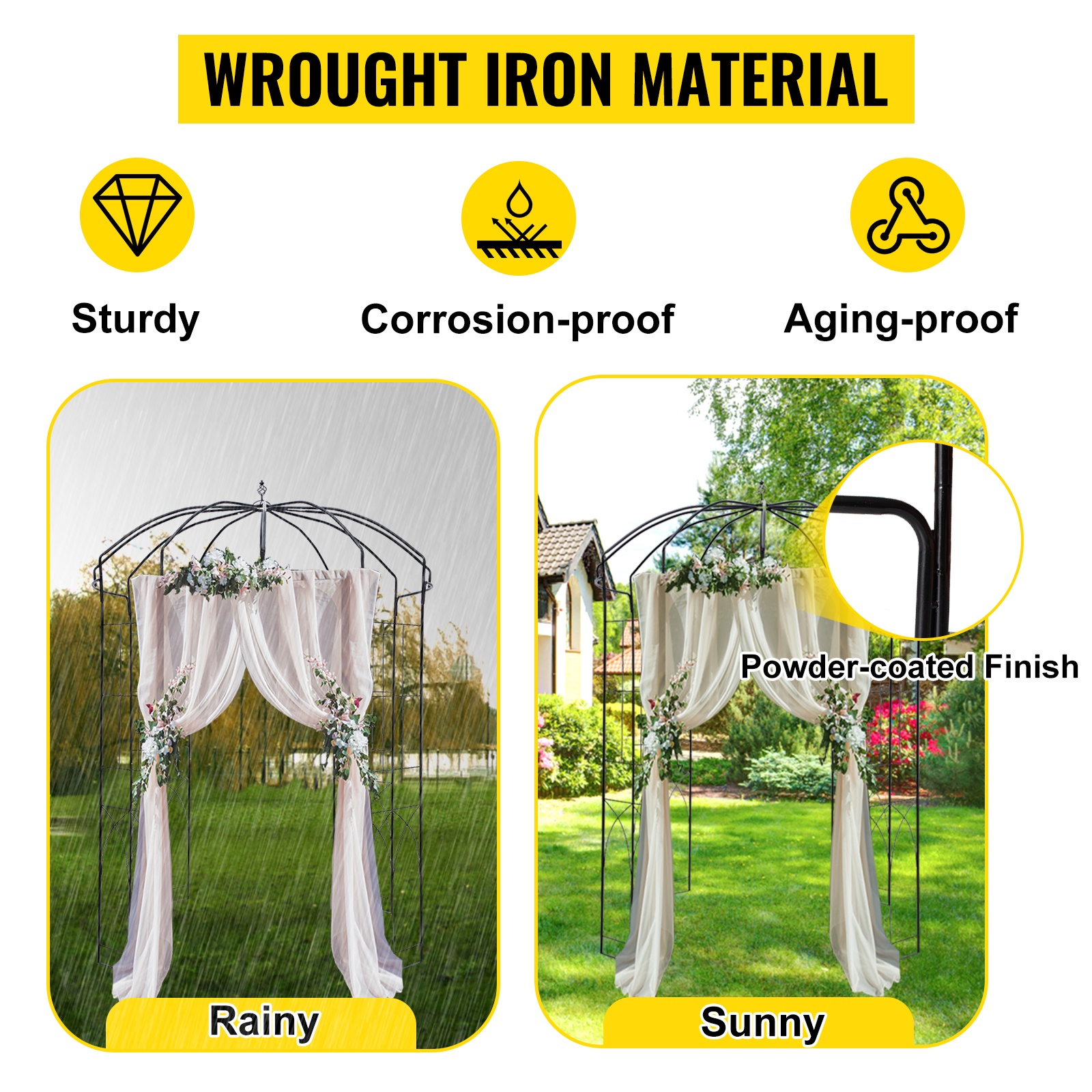 Lintuhäkin muotoinen rakenne tarjoaa reilusti tilaa myös suuremmille puutarhakalusteille. Kokonaiskorkeus: 8 ft/2.4 m, leveys: 6.56 ft/2 m.