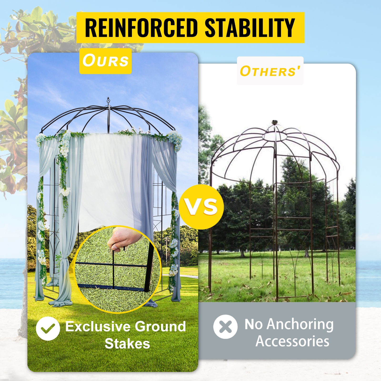 Lintuhäkin muotoinen teräshuvimaja luo puutarhaan selkeän keskipisteen ja tarjoaa runsaasti tilaa oleskeluun. Kestävä teräsrakenne ja säänkestävä pinnoite tekevät siitä sopivan ympärivuotiseen ulkokäyttöön. Huvimajaa voi käyttää esimerkiksi puutarhan katseenvangitsijana, rauhallisena istuskelupaikkana tai juhlakaarena erilaisten köynnöskasvien tueksi.