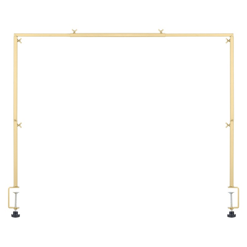 Metallinen pöytäkaariteline puristinkiinnityksellä helpottaa juhlien ja tilaisuuksien koristelua. Korkeutta ja pituutta voi säätää eri pöytäkokoihin, ja teline kantaa koristeita yhteensä 10 lbs - 20 lbs / 4.5 kg - 9.1 kg ilman kaatumista. Mukana tuleva säilytyslaukku helpottaa kuljetusta ja suojaa osia, kun ne eivät ole käytössä.
