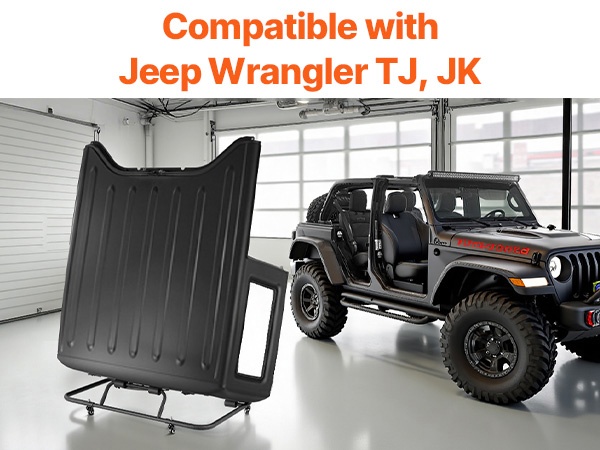Tämä teräsrakenteinen säilytyskärry on suunniteltu 2007–2023 Jeep Wrangler JK, JKU, JL ja Gladiator JT -mallien ovien säilytykseen. Kärry tarjoaa tukevan tuen neljälle ovelle, helpottaa ovien käsittelyä ja suojaa niitä naarmuilta ja kolhuilta pitkänkin säilytyksen aikana.
