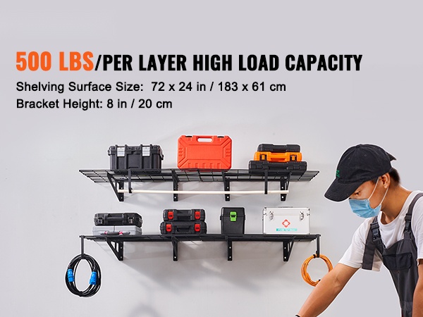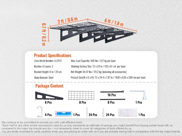 - Hyllypinnan koko: 4 x 2 ft / 48 x 24 in (122 x 61 cm)