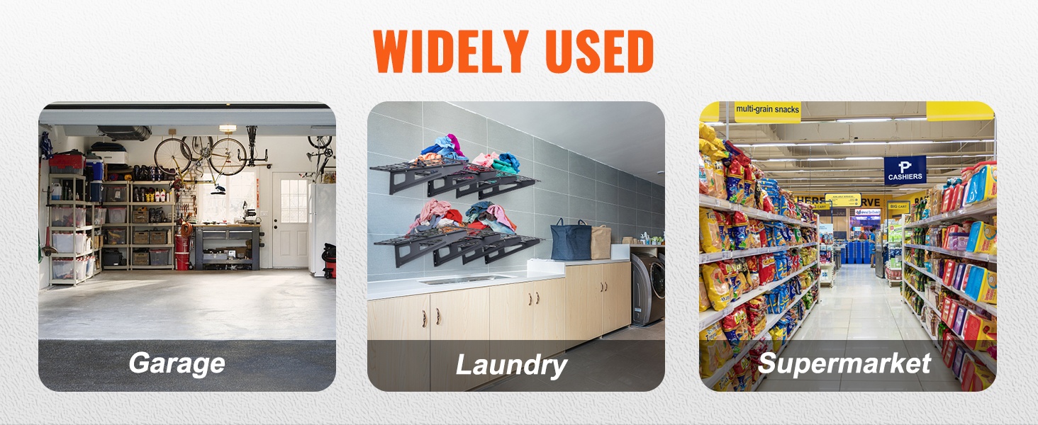 Hyllyjä voidaan käyttää esimerkiksi sähkötyökalujen säilytykseen autotallissa, pyykkien ja pesuaineiden järjestämiseen kodinhoitohuoneessa tai tuotteiden esillepanoon myymälässä ja varastossa.
