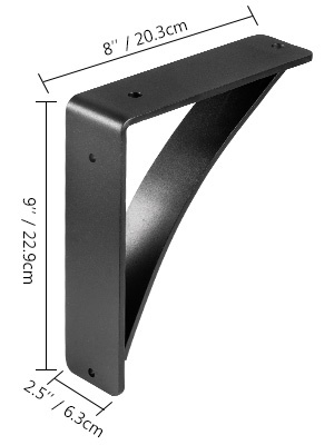 Teräksisen seinäkannattimen koko on 8 x 9 x 2.5". Se sopii hyllylevyille, joiden syvyys on 8.5"–11". Yhteensopiva useiden hyllymateriaalien, kuten MDF-levyn ja puun, kanssa.