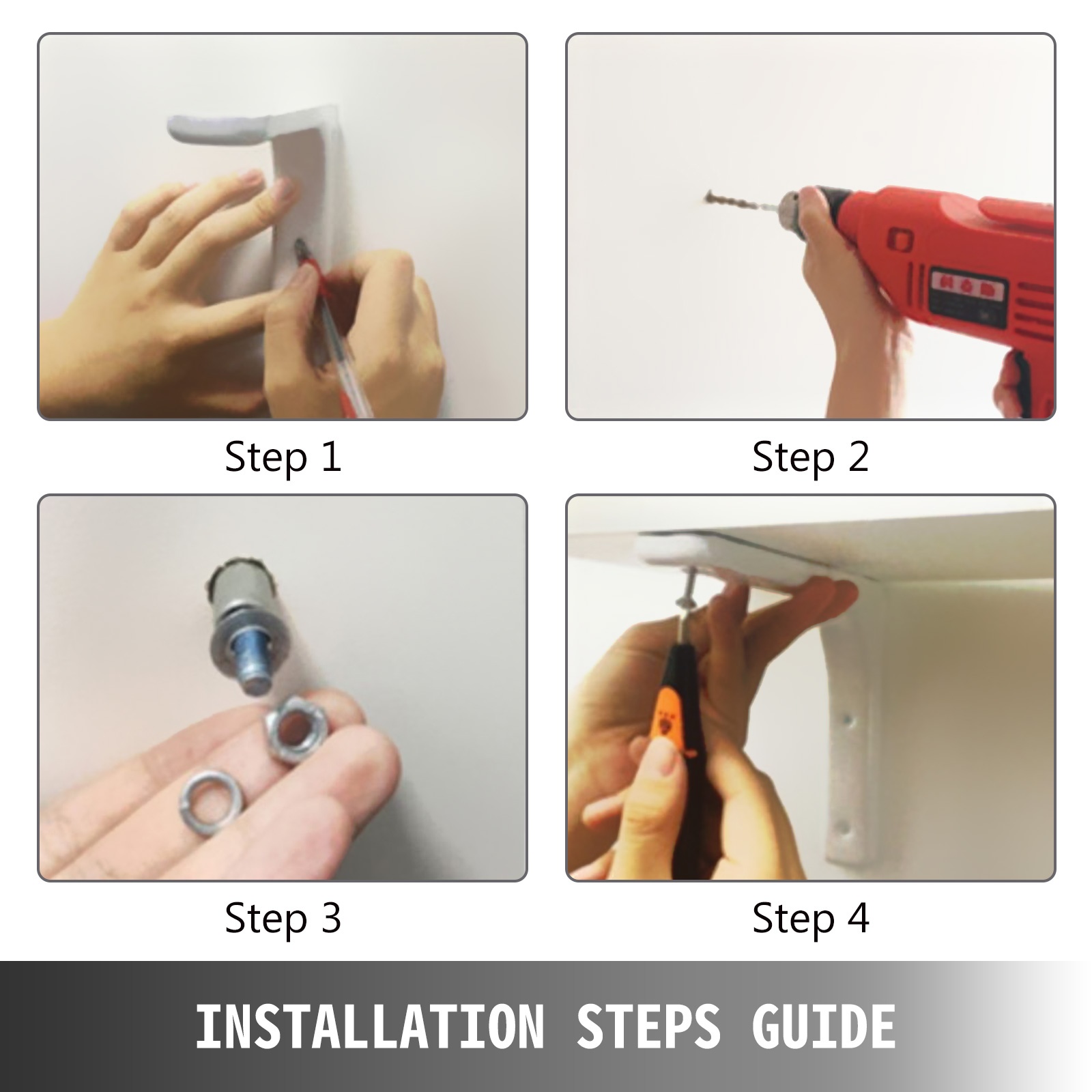 Vankka teräsrakenne ja kolmiorakenne mahdollistavat enintään 450 lbs kantavuuden kannatinparia kohti, kun hylly ja seinäkiinnitys ovat oikein asennettuja.