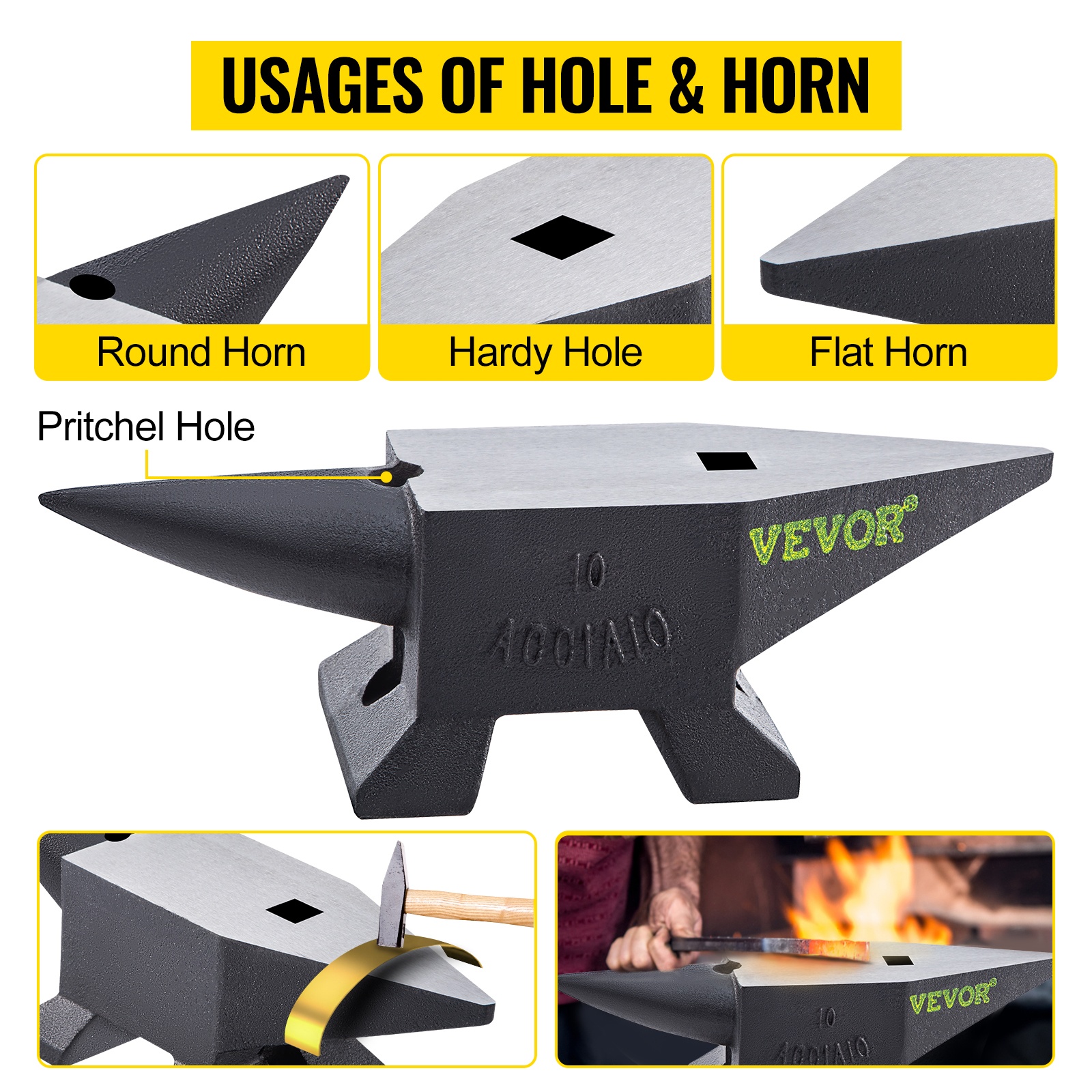 Pyöristetty sarvi sekä litteä sarvi helpottavat metallin sulavaa taivuttamista ja muotoilua. Hardy-reikä ja pyöreä reikä sopivat tarvikkeiden kiinnittämiseen, lävistystöihin ja tarkkaan taivuttamiseen.