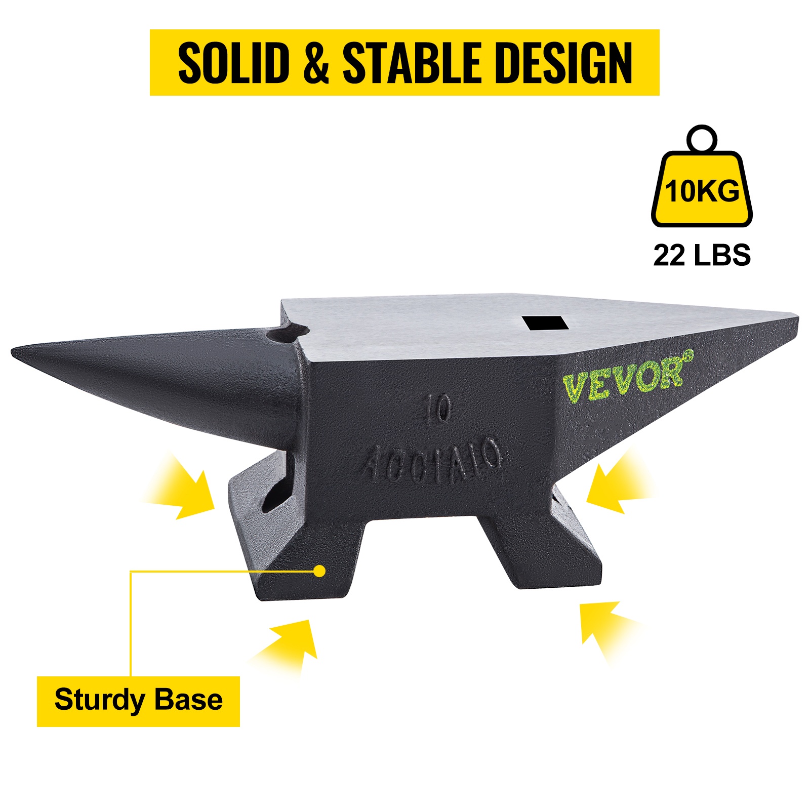 Tukeva kaareva jalusta auttaa pitämään 110 lbs/50 kg painoisen aljan vakaana taonnan, niittauksen ja muun metallinkäsittelyn aikana.