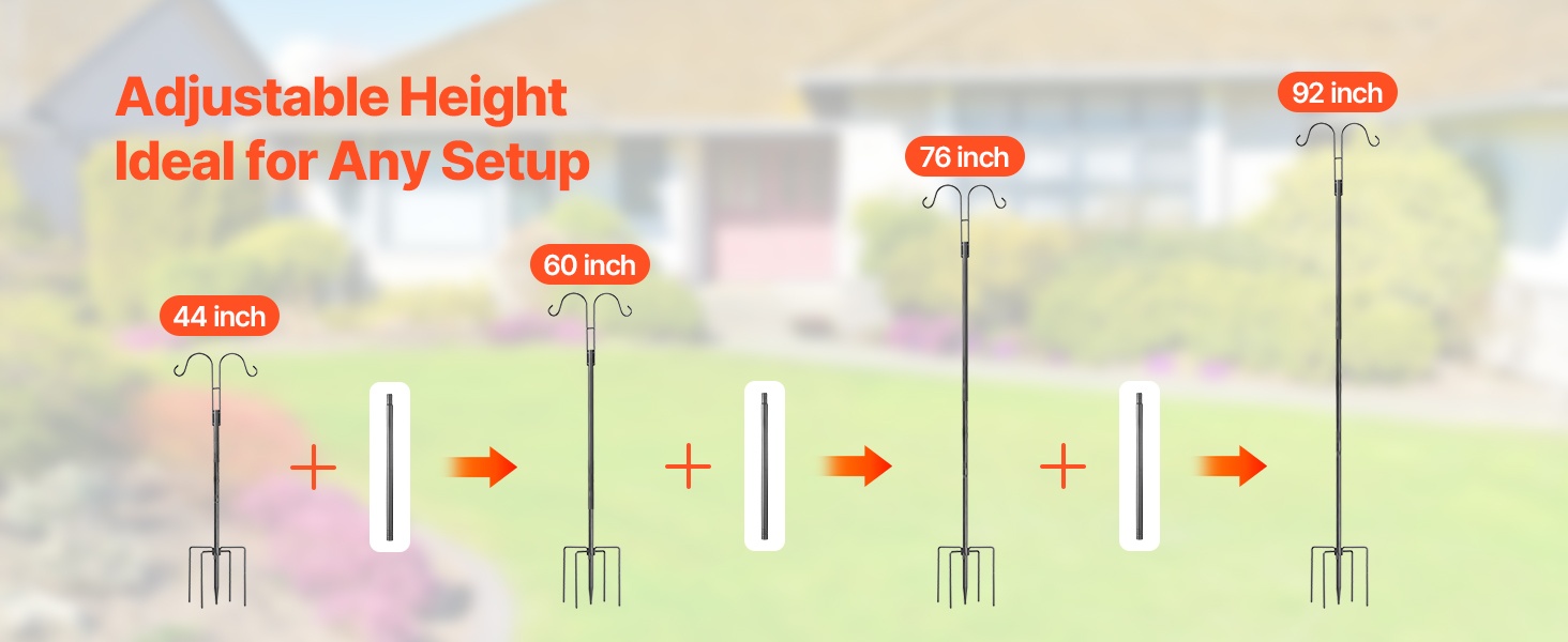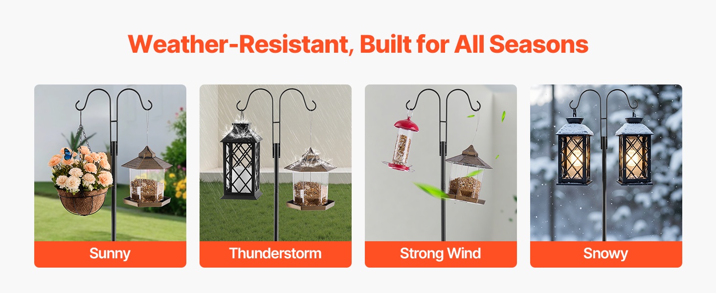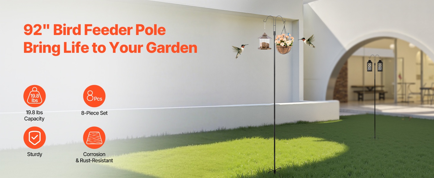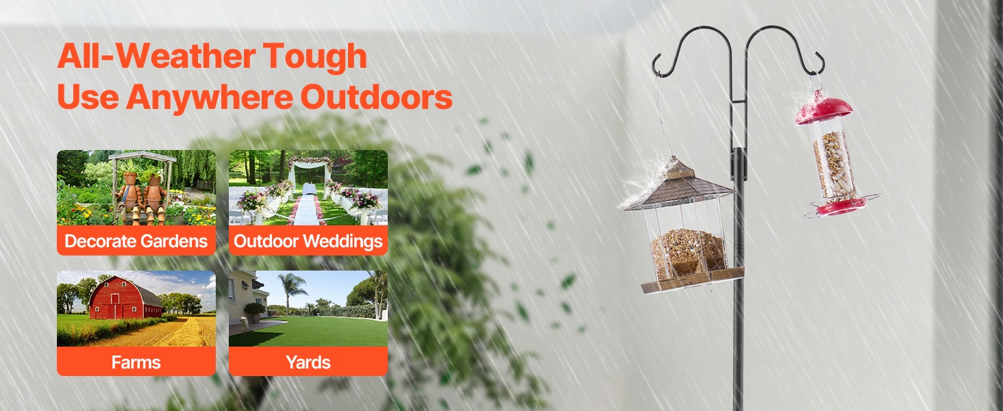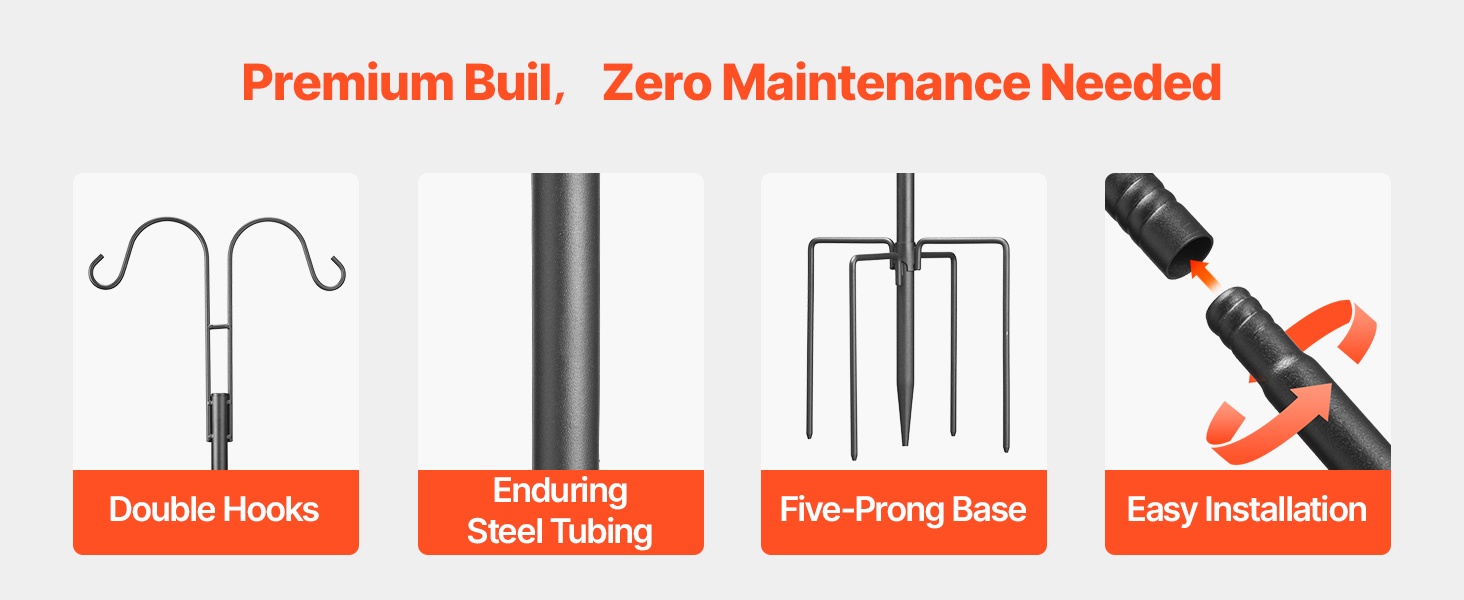Paalu on valmistettu lujista teräsputkista, mikä parantaa vakautta ja kestävyyttä. Säänkestävä pinnoite auttaa estämään ruostetta ja kulumista ympäri vuoden. Korkeuden säätö mahdollistaa käyttötarkoituksen muuttamisen helposti, esimerkiksi lintujen ruokinnasta puutarhavalojen ripustamiseen.