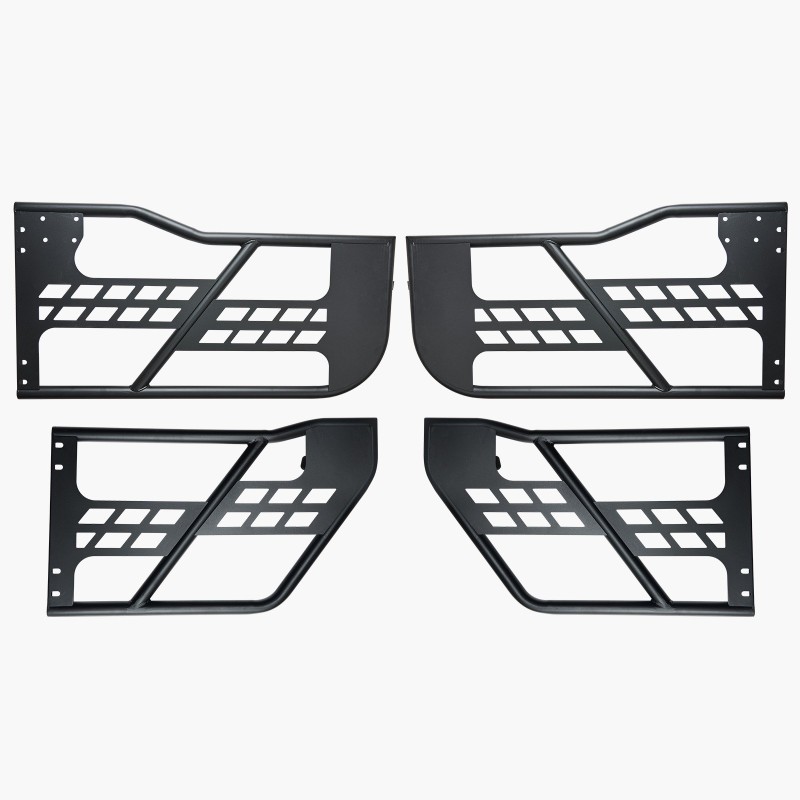 Nämä metalliputkirakenteiset ovet on suunniteltu 4-oviselle Jeep Wrangler JK -mallille (vuosimallit 2007–2018). Avoin putkirakenne parantaa näkyvyyttä maastossa ja antaa autolle jämäkän, metsästyskäyttöön sopivan ilmeen. Mukana tulevat DOT-sertifioidut taustapeilit sekä kumipehmusteet, jotka vähentävät kolinaa ja suojaavat auton maalipintaa.