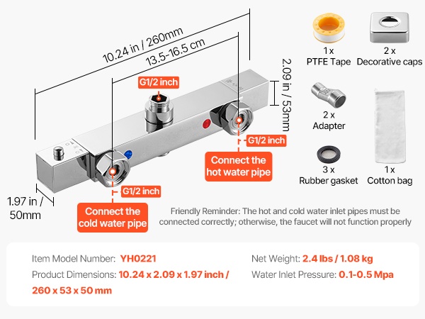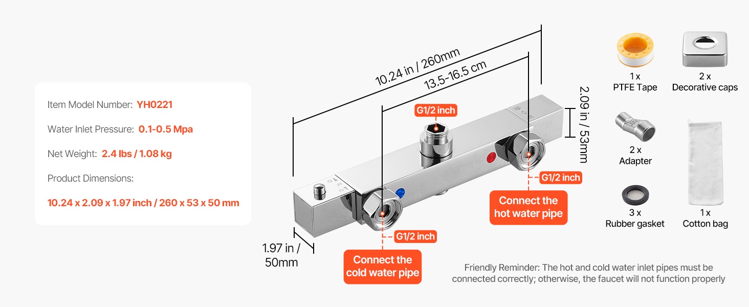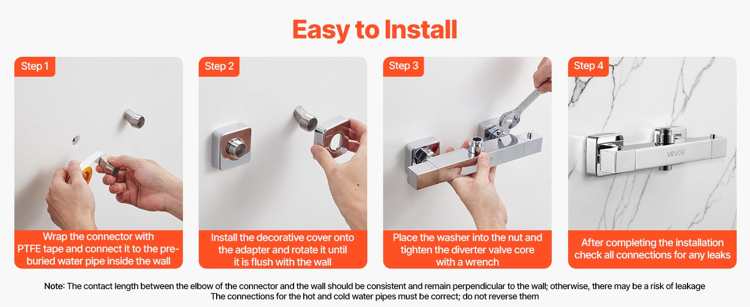 - Selkeä asennus: punainen liitos kuumalle ja sininen kylmälle vedelle