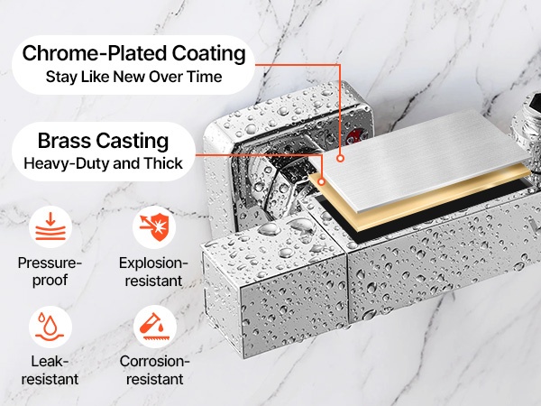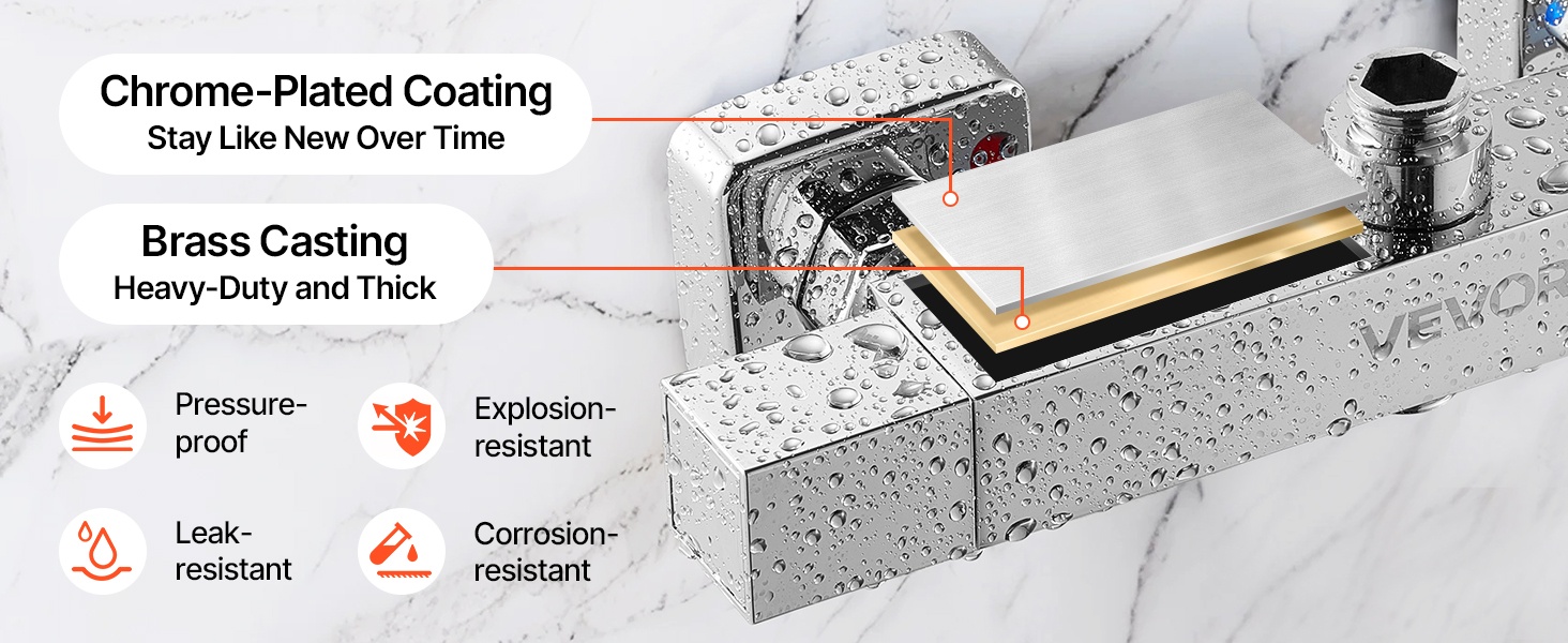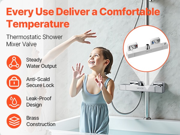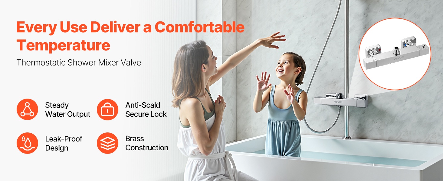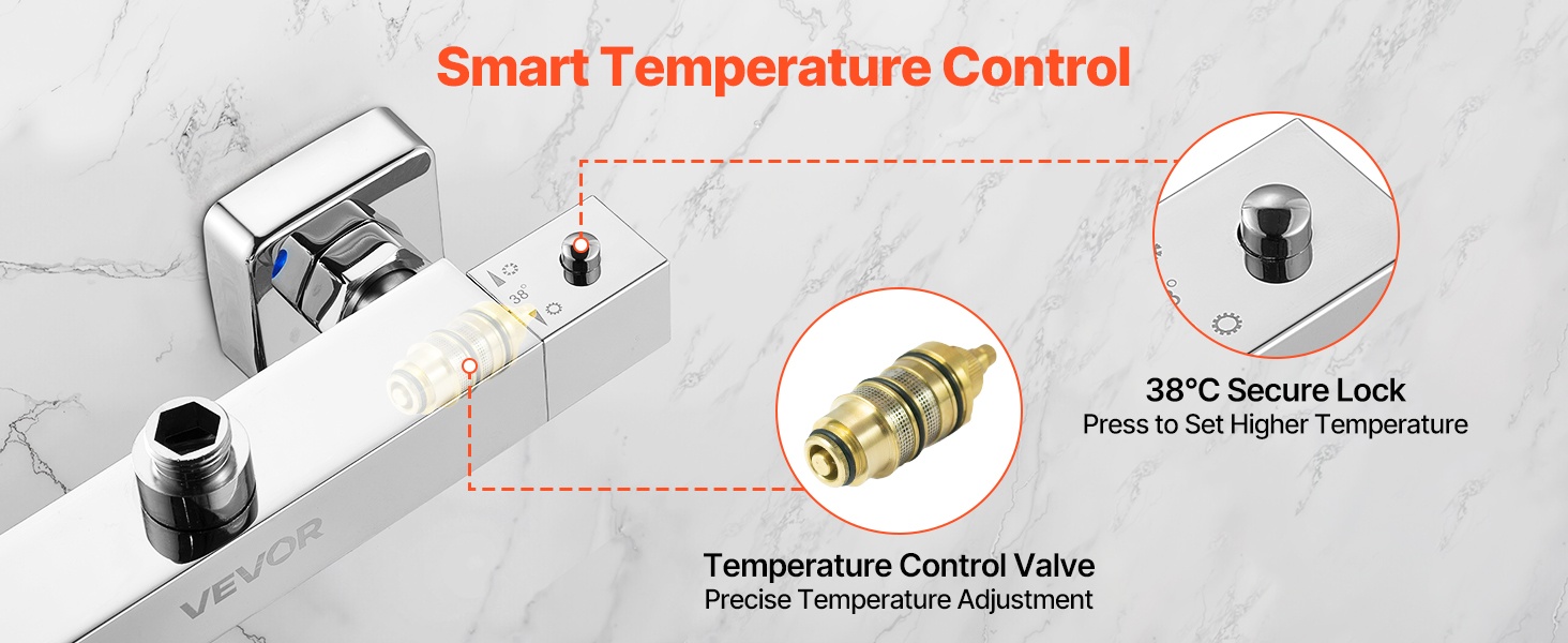 Termostaattinen suihkuhana mahdollistaa mukavan ja turvallisen suihkun. Lämpötila on helppo asettaa 38℃:een yhdellä käännöllä, eikä jatkuvaa säätämistä tarvita. Termostaatti pitää veden lämpötilan tasaisena, ja polttamissuoja ehkäisee liian kuuman veden yllättävät vaihtelut. Kestävä messinkirunko ja kromipinnoite varmistavat pitkäikäisen ja vuotamattoman käytön kylpyhuoneessa tai vaikkapa matkailuautossa.
