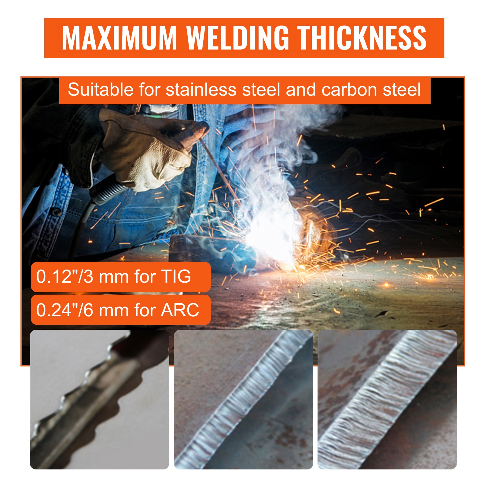 Valokaarisytytykseen perustuva hitsaustekniikka auttaa parantamaan hitsausjälkeä ja nopeuttamaan työn etenemistä. Suurin hitsattava materiaali-paksuus on 0.12"/3 mm TIG-tilassa ja 0.24"/6 mm ARC-tilassa.