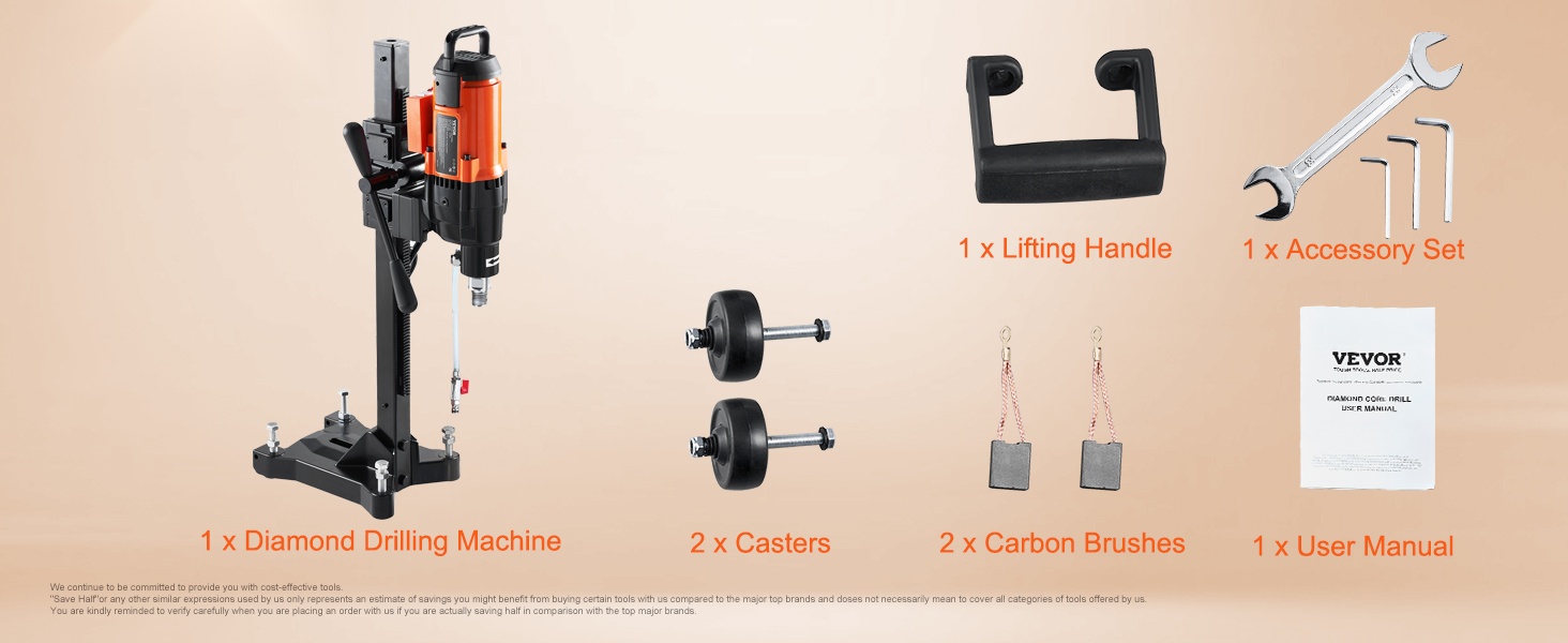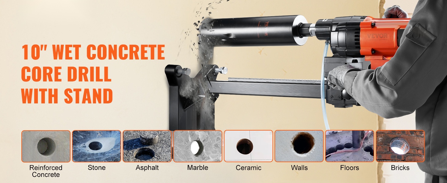 Timanttiporakone 2600W 20–180 mm porauskoko käsikäyttöinen ja telineasennettava