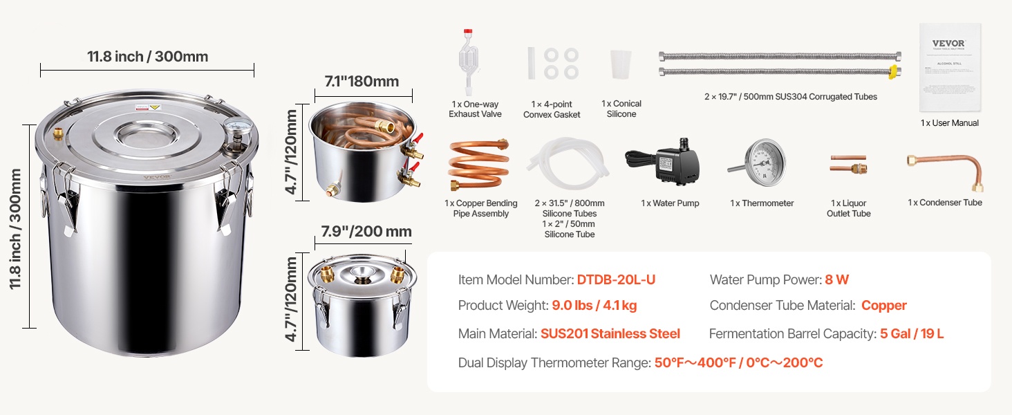 Ruostumattomasta teräksestä valmistettu tislain mahdollistaa erilaisten juomien ja tisleiden valmistamisen kotona. Pakkaus sisältää käymisastian, väliastian (thumper-kegi) ja jäähdytysastian, jotka on valmistettu elintarvikekelpoisesta materiaalista, jotta käymis- ja tislausprosessit pysyvät hygieenisinä.