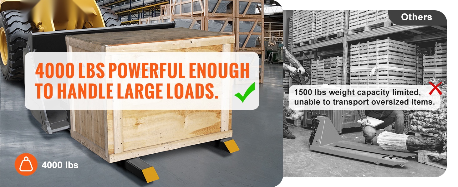 - Kantavuus jopa 2000 lbs / 907 kg raskaiden kuormien käsittelyyn