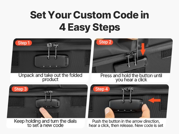 Päivitetyssä numerosalpalukossa voit asettaa oman henkilökohtaisen koodin 4 yksinkertaisessa vaiheessa. Yhdessä vedenpitävän vetoketjun kanssa se muodostaa lisäsuojan tiedostoille ja elektroniikalle kotona, toimistossa ja matkoilla.