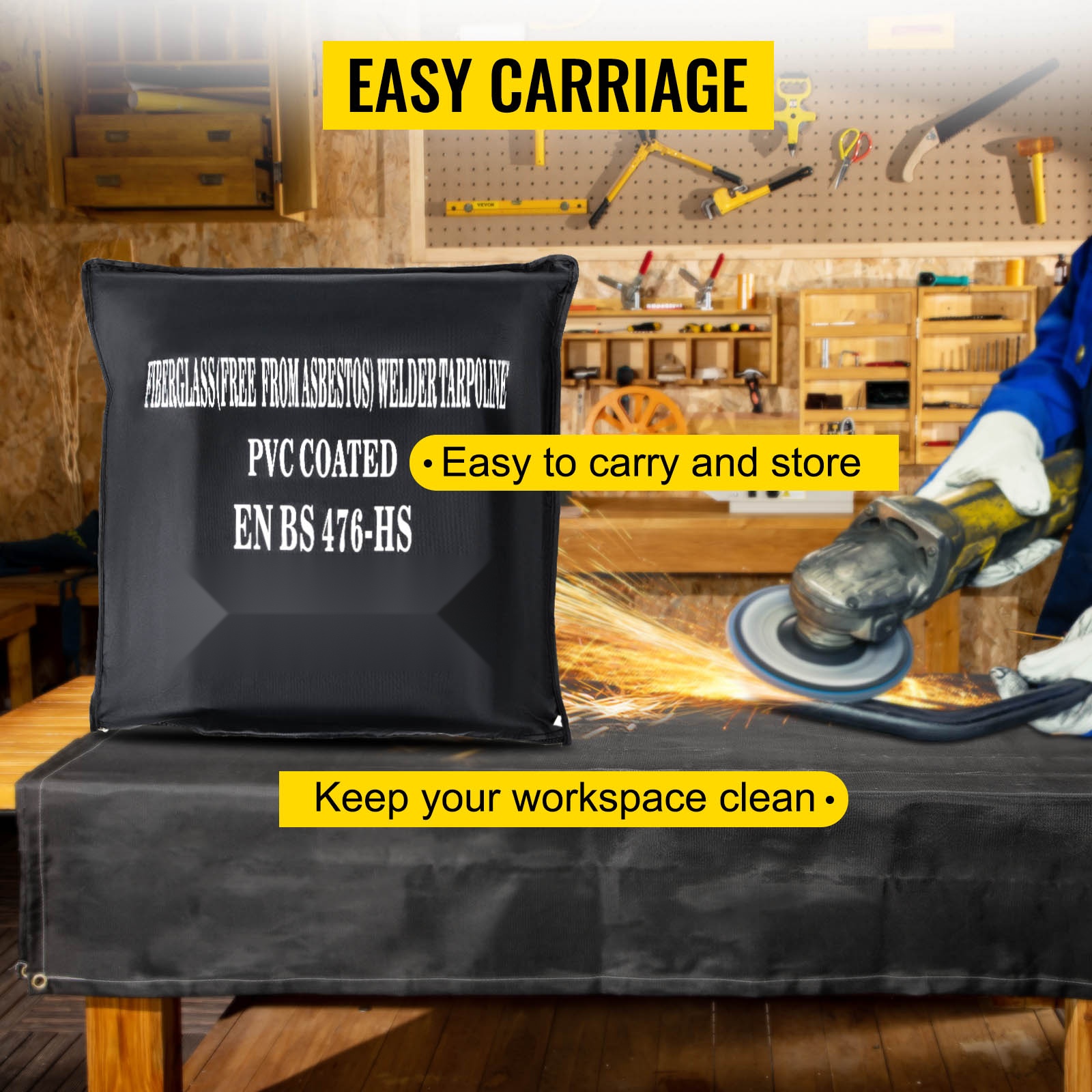 Tämä 6 x 10 jalkaa / 1.8 x 3.05 m kokoinen lasikuituinen tulensuojapeite suojaa työaluetta kipinöiltä, roiskeilta ja lämmöltä hitsauksessa sekä muissa kuumissa töissä. Peite soveltuu esimerkiksi grillien, uunien, kamiinoiden, takkojen, leirinuotioiden ja raskaiden hitsauslaitteiden läheisyyteen.