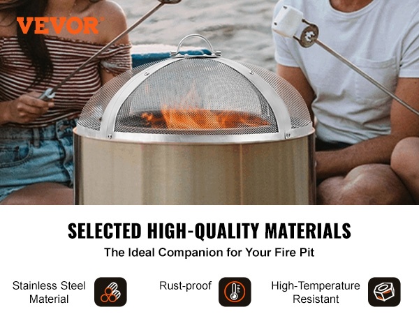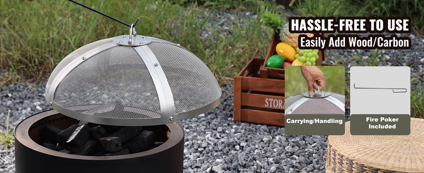 Tämä ruostumattomasta teräksestä valmistettu tulisijan kansi suojaa tulipesääsi ympäri vuoden. Se auttaa pitämään kipinät ja roskat poissa, pidentää tulisijan käyttöikää ja tekee ulkoilusta miellyttävämpää takapihalla, terassilla tai retkellä.