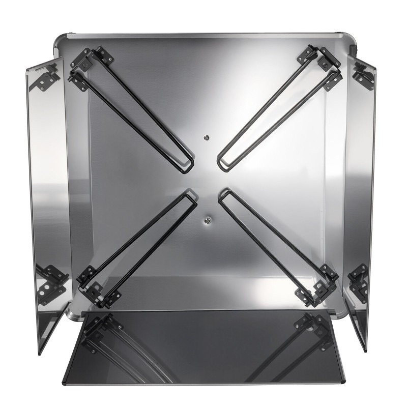 Käytön jälkeen ja jäähdyttyään pinta voidaan pyyhkiä puhtaaksi. Sivupaneelit voi irrottaa ja jalat taittaa kasaan, jolloin lämpösuoja vie vain vähän tilaa ja on helppo pakata mukaan esimerkiksi retkelle.