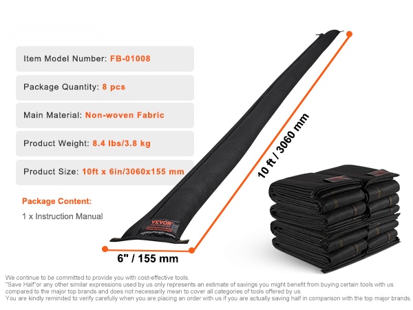 - Tuotteen koko: 10ft x 6in / 3060x155 mm
