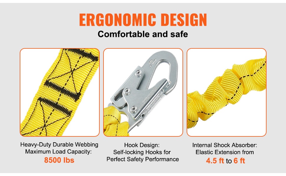 Turvaköysi on helppo ottaa käyttöön ja irrottaa. Jousisalpakoukut avautuvat riittävän suureksi, jotta kiinnitys rakenteisiin on nopeaa ja varmaa, mikä helpottaa työskentelyä raskaidenkin työpäivien aikana.