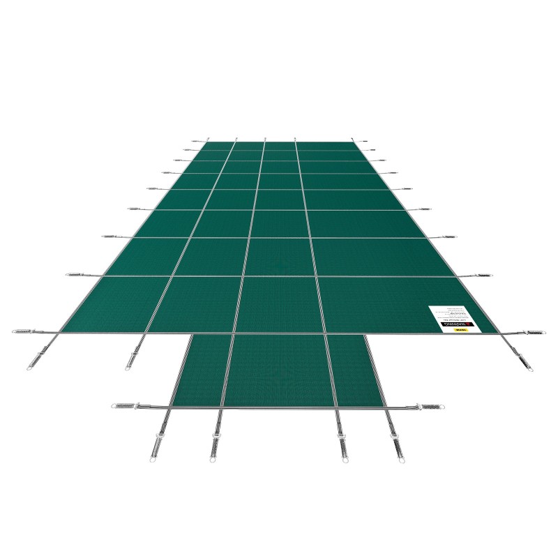 Tämä turvapeite on mitoitettu 16x32 jalkaa kokoiselle upotetulle suorakulmalliselle uima-altaalle, jossa on 4x10 jalkaa keskellä päädyssä oleva porrasalue. Peite suojaa allasta talvikaudella ja silloin, kun allas ei ole käytössä. Kestävä, tiheä verkkomateriaali päästää sadeveden läpi, mutta estää lehtien, roskien ja lumen pääsyn altaaseen, mikä helpottaa altaan puhtaana pitämistä ja auttaa pitämään lapset ja lemmikit turvassa peitteen ollessa paikoillaan.