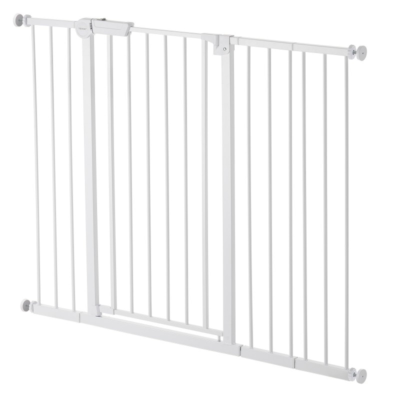 Korkea 36 in / 91.4 cm rakenne ja tiheä pystyritilä auttavat estämään kiipeämistä ja pienten lasten tai lemmikkien livahtamista portin välistä. Automaattisesti sulkeutuva mekanismi vetää portin kiinni, jos se jää raolleen, ja kaksoislukitus parantaa turvallisuutta vilkkaassa arjessa.